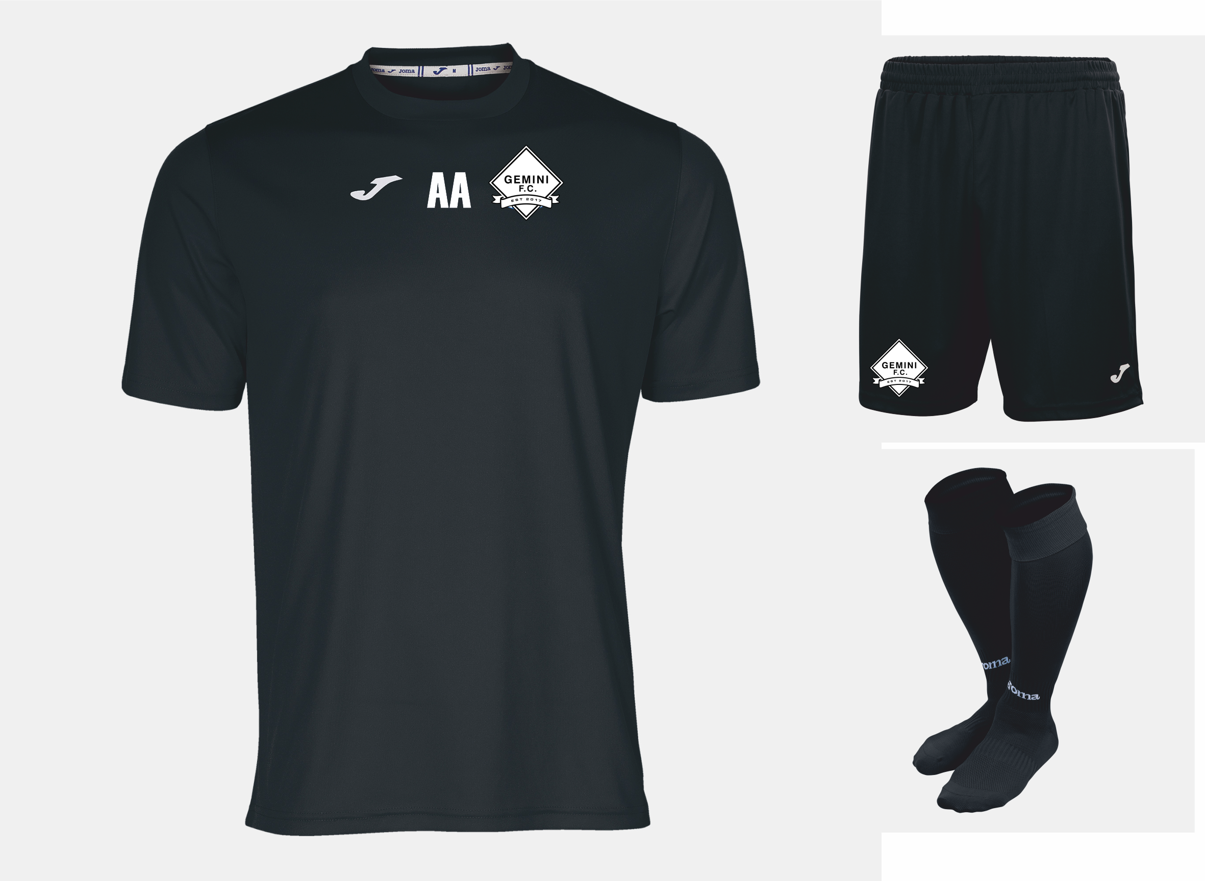 - Black Joma tee, short and socks.