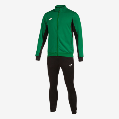 The Joma Derby Tracksuit is designed to wear comfortably before, during and after training sessions. Thanks to its freedom of movement, the athlete is be able to carry out all his movements with total comfort. In addition, the inner fleece lining keeps you warm when temperatures drop. The jacket incorporates a full-zip closure and a button protected by a piece of textile, thus preventing it from rubbing against the neck. Likewise, it has a high collar to warm the area and pockets to store small objects. The ribbed hem and cuffs achieve a more comfortable fit in order to not let body heat escape without limiting mobility. As for the design, it has contrasting lines on the sides and sleeves that stylize the sweatshirt. The pants include an adjustable elastic waist with a flat interior drawstring, pockets without zippers and a ribbed hem that keeps the athlete warm. Both garments are made with fleece inside, which provides thermal resistance under adverse weather conditions. In this way, the athletes feeling of comfort will be optimal. In addition, this material is highly resistant to washing, so this tracksuit is designed to offer maximum durability.